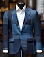 Voor heren Blazerjack Linnen blazer Inkeping kraag Modieus Casual Effen Blazer Stoffig blauw Licht Grijs Donkerblauw Getailleerd Single Breasted een knoops