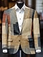 Voor heren Kleurenblok Meetkundig Blazerjack Jas Comfortabel Ademend Artistiek Casual Dagelijks Feestavondkleding Causaal Zak 3D-afdrukken Knop Alle seizoenen Inkeping Lange mouw blauw Oranje Goud