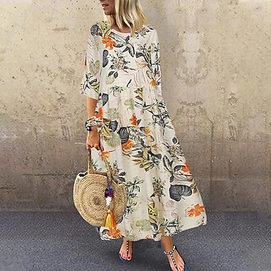 Dames Maxi-jurk Imitatie katoenlinnen Kaftanjurk Casual jurk Basic Modern Dagelijks Weekend Ruim Passend Bloemig Halve mouw Gespleten nek blauw Wit Blozend Roze Grijs Zomer Lente