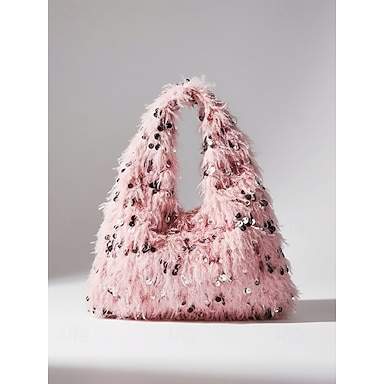 Damestas van imitatiebont met pailletten – sprankelend glanzend ontwerp met pluche materiaal, verkrijgbaar in twee maten, perfect voor avondfeesten en speciale gelegenheden