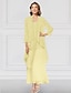 Tweedelig Strak kolom Jurk pak Tot de knie Bruiloft gast jurk Moeder van de bruid jurk 3/4 mouw Met sieraad Elegant Eenvoudig Formeel Bruiloft gast Stretchstof Jas Jurken met Borduurwerk Appliqués