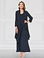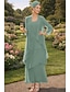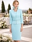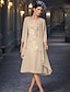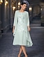 Tweedelig Strak kolom Jurk pak Tot de knie Bruiloft gast jurk Moeder van de bruid jurk 3/4 mouw Met sieraad Elegant Bruiloft gast Kerk (83 Chiffon Satijn Kant Jas Jurken met Appliqués