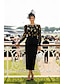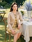 Tweedelig Over de knie Bruiloft gast jurk Moeder van de bruid jurk Halve mouw Met sieraad Elegant Vintage Formeel Bruiloft gast Chiffon Jas Jurken met Pailletten Gelaagde ruches