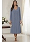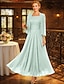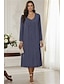Jurksets Thee Lengte Bruiloft Gast Jurk Moeder van de Bruid Jurk 3/4 Lengte Mouw Vierkante Hals Elegante Eenvoudige Bruiloft Gast met Effen Kleur