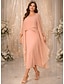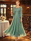 Strak kolom Over de knie Bruiloft gast jurk Moeder van de bruid jurk 3/4 mouw Met sieraad Elegant Bruiloft gast Chiffon Wrap inbegrepen met Ruches
