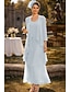 Tweedelig Jurk pak Tot de enkel Bruiloft gast jurk Moeder van de bruid jurk Lange mouw Strakke ronde hals Elegant Bruiloft gast Kerk (83 Chiffon met Kant Borduurwerk