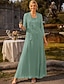Tweedelig A-lijn Jurk pak Tot de grond Bruiloft gast jurk Moeder van de bruid jurk Halve mouw Met sieraad Elegant Glitter & Sprankel Bruiloft gast Semi formeel Chiffon met Knopen Appliqués Bloem