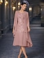 Jurken Jurk pak Over de knie Bruiloft gast jurk Moeder van de bruid jurk 3/4 mouw Met sieraad Elegant Vintage Formeel Bruiloft gast Stretchstof met Kant Pareldetails