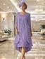 Tweedelig Strak kolom Tot de knie Bruiloft gast jurk Moeder van de bruid jurk Mouwloos Vierkante hals Elegant Bruiloft gast Bruiloft Kerk (83 Chiffon Kant Jas Jurken met Effen kleur