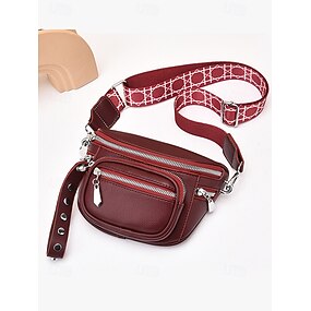 Bordeauxrode schoudertas van imitatieleer voor dames met meerdere ritsvakken, brede band en zilveren hardware, stijlvolle handtas voor dagelijks gebruik en kerstvakantie-outfits