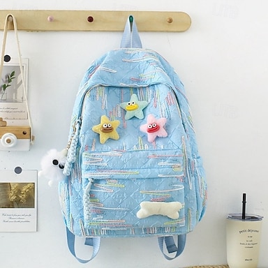 5-in-1 schoolrugzakset met pluchen bedeltjes, lichtgewicht nylon, kawaii-stijl, voor meisjes en tienerstudenten, ideaal voor school en dagelijks gebruik