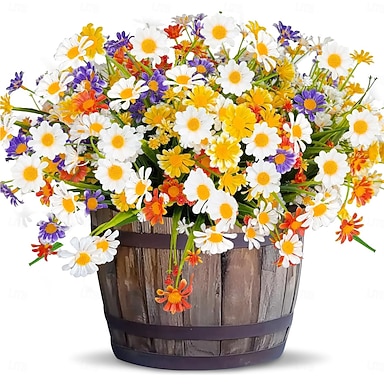 6 bosjes madeliefjes kunstbloemen diverse kleuren buiten groene plant struik plant binnen en buiten hangende bloempot thuis bruiloft kantoor tuin veranda decoratie