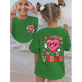 Valentijnskaarten Voor meisjes 3D Hart Grafisch T-shirt Korte mouw 3D-afdrukken Zomer Lente Sport Modieus Streetwear Kinderen 4-12 jaar Strakke ronde hals Casual Dagelijks Buiten Normale pasvorm