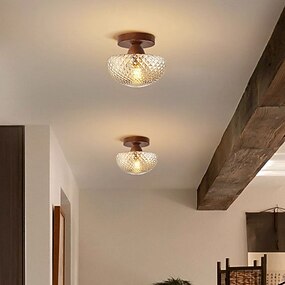 moderne retro ronde ovale koepel houten basis glas 1-lichts semi-flush montage plafondlamp voor woonkamer 110-240v