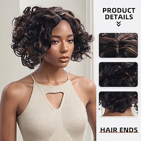 vrouwen meisjes korte krullende bob golvende pruik body wave halloween cosplay dagelijks feest pruiken