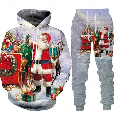 kerst heren kerstman 3d hoodies trainingspak hoodies set rood groen zwart wit rood marineblauw met capuchon grafische kerstman sneeuwpop 2-delig print sport&outdoor casual 3d print streetwear