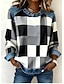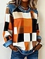 Dames Trui-sweatshirt Ruitjes Actief Vintage Modieus Lange mouw Ronde hals Normale tops Huis Werk Straat Oceaan groen Oranje kleur Zwart Rood khaki Lente Herfst Winter