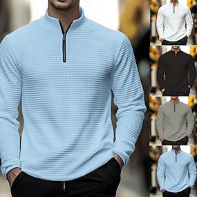Voor heren Wafel Poloshirts Met Textuur Sport & Outdoor Casual Zonder Kraag Lange mouw Modieus Comfortabel Effen Rits omhoog Lente & Herfst blauw Zwart Wit Grijs Wafel Poloshirts