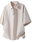 Voor heren Linnen overhemden Poloshirts Casual Vakantie Revers Korte mouw Modieus Basic Effen Kleur Koeling Kwart ritssluiting Zomer Lente Licht Roze Zwart Abrikoos Linnen overhemden