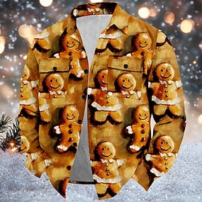 Kerstmis Voor heren Peperkoek mannen Overhemd Corduroyshirt Overhemdjasje Lange mouw Lelijk Casual Evenement / Feest Dagelijks gebruik Herfst winter Strijkijzer Overhemden met kraag Knop 3D-afdrukken