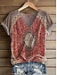 Dames T-shirt Afdrukken Grafisch Paisley Bohemen Stijlvol Casual Korte mouw V-hals Normale tops Dagelijks Weekend Strand Kleding Wit / Zwart Zwart Rood Licht Bruin Paars Zomer