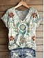Dames T-shirt Afdrukken Bloemig Grafisch Planten Vintage Stijlvol Casual Korte mouw V-hals Normale tops Dagelijks Weekend blauw Licht beige Zwart Rood Licht Bruin Zomer Lente