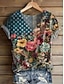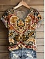 Dames T-shirt Afdrukken Bloemig Grafisch Planten Vintage Stijlvol Casual Korte mouw V-hals Normale tops Dagelijks Weekend blauw Geel Wijn Paars Oranje Zomer Lente