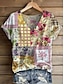 Dames T-shirt Afdrukken Bloemig Grafisch Planten Vintage Stijlvol Casual Korte mouw V-hals Normale tops Casual Dagelijks Weekend blauw Geel Rood Bruin Zomer Lente