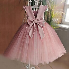 bloemenmeisje jurk kinderen meisjes jurk effen kleur a lijn jurk knielange jurk outdoor ronde hals mouwloos mode jurk 3-8 jaar lente wit roze camel