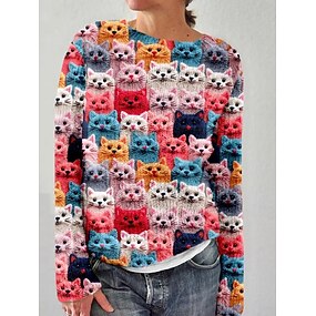 Dames Trui Dagelijks Grafisch Strakke ronde hals Afdrukken Lange mouw Normale tops breien Formeel Weekend Blozend Roze Paars Herfst Winter