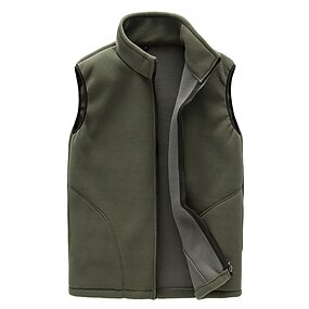 Voor heren Fleece vest Buiten vest Visvest Dagelijks Afspraakje Vakantie Modieus Casual Herfst winter Zak Polyester Houd Warm Comfortabel Effen Kleur Rits Opstaand Normale pasvorm Zwart Khaki Grijs