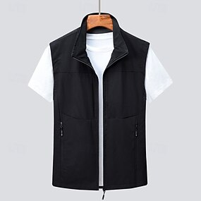 Voor heren Vest Visvest Wandelvest Mouwloos vest Gilet jack Alledaagse kleding Modern eigentijds Lente zomer Voor buiten Effen / effen kleur Rits Opstaande boord Ruim Passend Rijst Wit Zwart khaki