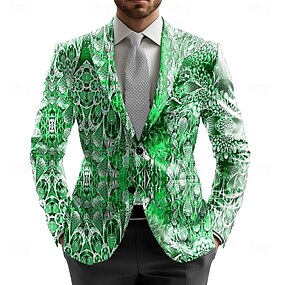 Voor heren Blazerjack Formeel Stijlvol Casual / Dagelijks Alle seizoenen 100% Polyester Weven Juwelen 3D-afdrukken Knop Comfortabel Enkele rij knopen Blazer Rood Goud Groen