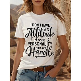 Dames T-shirt Brief Tekst Grappig jargon Basic Korte mouw Ronde hals Normale tops Dagelijks Weekend Afdrukken Zwart Rood blauw Groen Lente, Herfst, Winter, Zomer