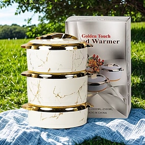 Touch food warmer set, 3-delige thermische ovenschaal met deksel, geïsoleerde roestvrijstalen bak voor warme/koude gerechten, antiaanbak kookgerei, moderne ABS-behuizing