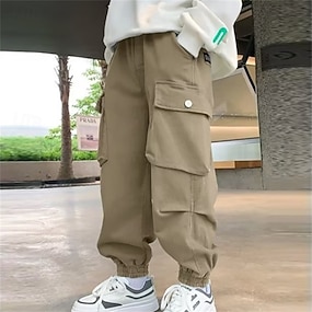 Kinderen Jongens Broek Cargohosen Broek Lapwerk Zak Effen Kleur Ademend Zacht Comfort Broek Buiten Dagelijks Basic Zwart Khaki Middelhoge taille