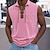 Voor heren Poloshirts Overhemd van 100% katoen met zure wassing Casual Feestdagen Veterhals Korte mouw Modieus Basic Effen Wijnoogst Puur Zomer Lente blauw Zwart Blozend Roze Grijs Poloshirts