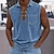 Voor heren Linnen overhemd Poloshirts Casual Vakantie Zonder Kraag Korte mouw Vakantie Modern Effen Kleurenblok Knop Zomer Lente blauw Wit Geel Rood Grijs Linnen overhemd
