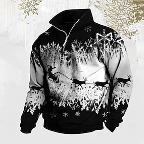 Kerstmis Voor heren Eland Sneeuwvlok Poloshirts met rits Lange mouw Poloshirt Revers Casual Buiten Festivaloutfit 3D-afdrukken Herfst Winter Zwart Rood Groen