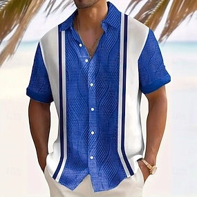 Voor heren Gestreept Geometrisch patroon Bowlingshirt Overhemd met knopen Korte mouw Mode-casual Vakantie Buitensporten Strand Kleding Zomer Lente Strijkijzer shirts met kraag blauw Oranje Groen