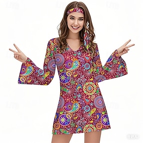 Retro vintage Jaren '70 Schijf Kort / Mini Jurken Hoofddeksels hoofdbanden Hippie Kostuum Dames Maskerade Casual / Dagelijks Vrijgezellenfeest Prideparade Volwassenen Kleding Hoofddeksels