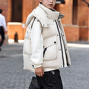 Kinderen Uniseks Vest jas bovenkleding Effen Kleur Mouwloos Houd Warm jas Buiten Modieus Dagelijks Wit Khaki Herfst Winter 4 jaar +