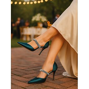 Damesblauwe satijnen stilettohakken met kristallen band - elegante pumps met puntige neus voor formele gelegenheden en cocktailparty's