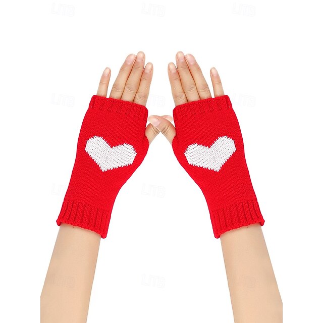 Gebreide vingerloze dameshandschoenen met hartjesdesign, verkrijgbaar in diverse kleuren, ideaal voor Valentijnsdag en dagelijks gebruik in de herfst/winter. 2026 - $9.99 –P3