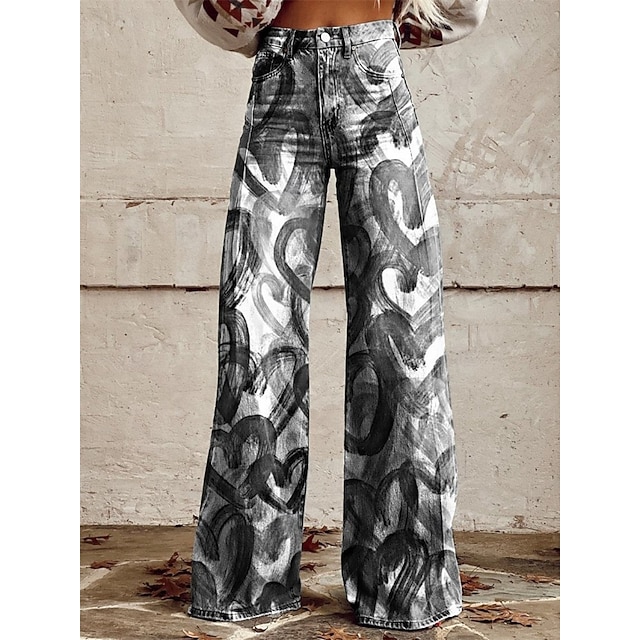 Retro vintage Boho Jaren '70 Broeken Broek met wijde pijpen Hippie Schijf Hoge taille Olieverfafdruk Faux Jeans Stijl Kostuum Dames Carnaval Casual / Dagelijks muziekfestival Retro themafeest 2026 - $61.99 –P1