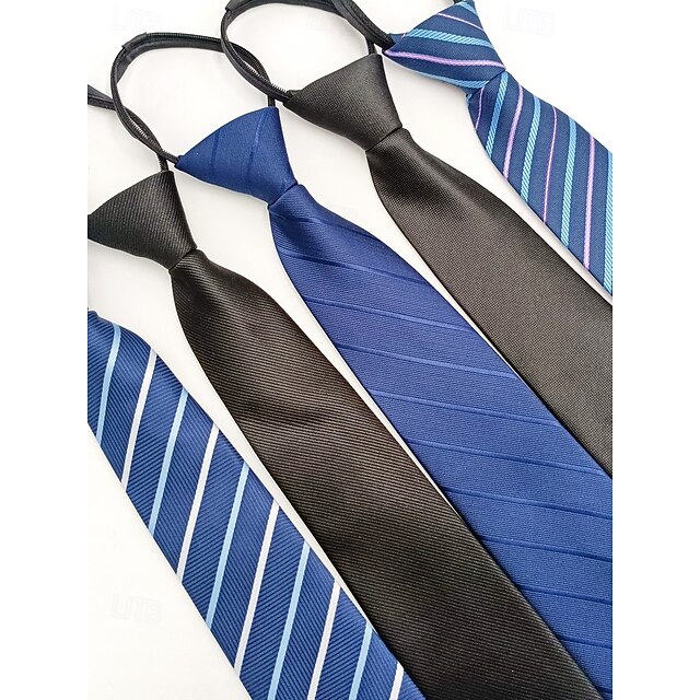 Herenstropdas met ritssluiting, voorgeknoopte polyester stropdas met verborgen ritssluiting, klassieke gestreepte zakelijke stijl, verkrijgbaar in meerdere kleuren, voor bruiloften, kantoor en smart casual gelegenheden. 2026 - $12.99 –P3