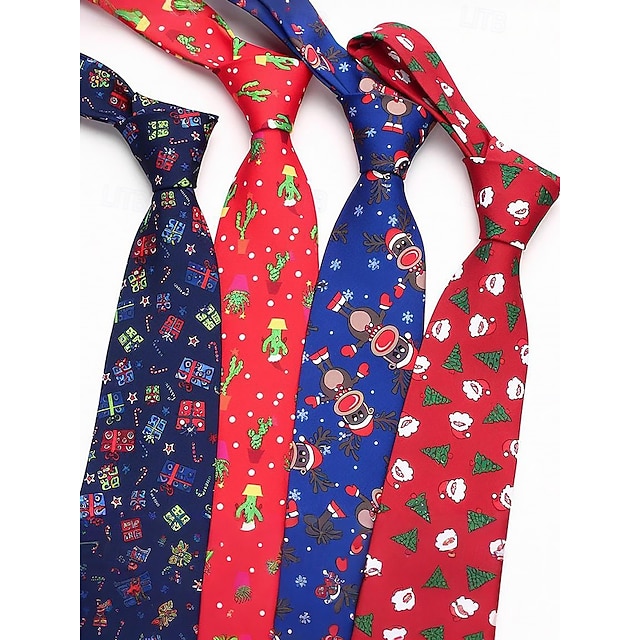 Polyester zijden kerststropdas voor heren – leuke kerstman- en boompatronen, perfect voor feestdagen, kerstevenementen en feestelijke gelegenheden 2026 - $11.99 –P4