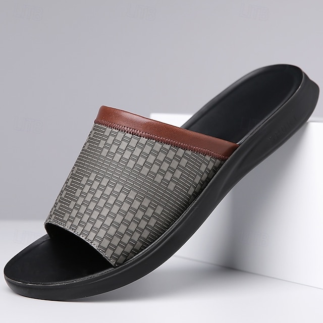 Heren geweven imitatieleren slippers met een getextureerd bovenwerk, comfortabel instapmodel, perfect om te ontspannen bij het zwembad en op vakantie