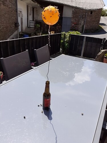 Supet efficace pour attraper mouches,moustic.Je ne l ai pas suspendu,mais attaché sur du fil de fer,et posé dans une bouteille remplie de sable.Posé sur la table de la terrasse. Supet efficace pour attraper mouches,moustic.Je ne l ai pas suspendu,mais attaché sur du fil de fer,et posé dans une bouteille remplie de sable.Posé sur la table de la terrasse.