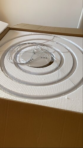 Doordat de LEDs aan de binnen zijde zijn verwerkt heb je toch in een cirkel van 5m rond de lamp die zelfde hoeveelheid licht en weinig last van schaduw plekken. fotos 1 en 2 open verpakking. Fotos 3 en 4 binnen een uur hing de lamp al op zijn plek en kon hij in gebruik genomen worden.